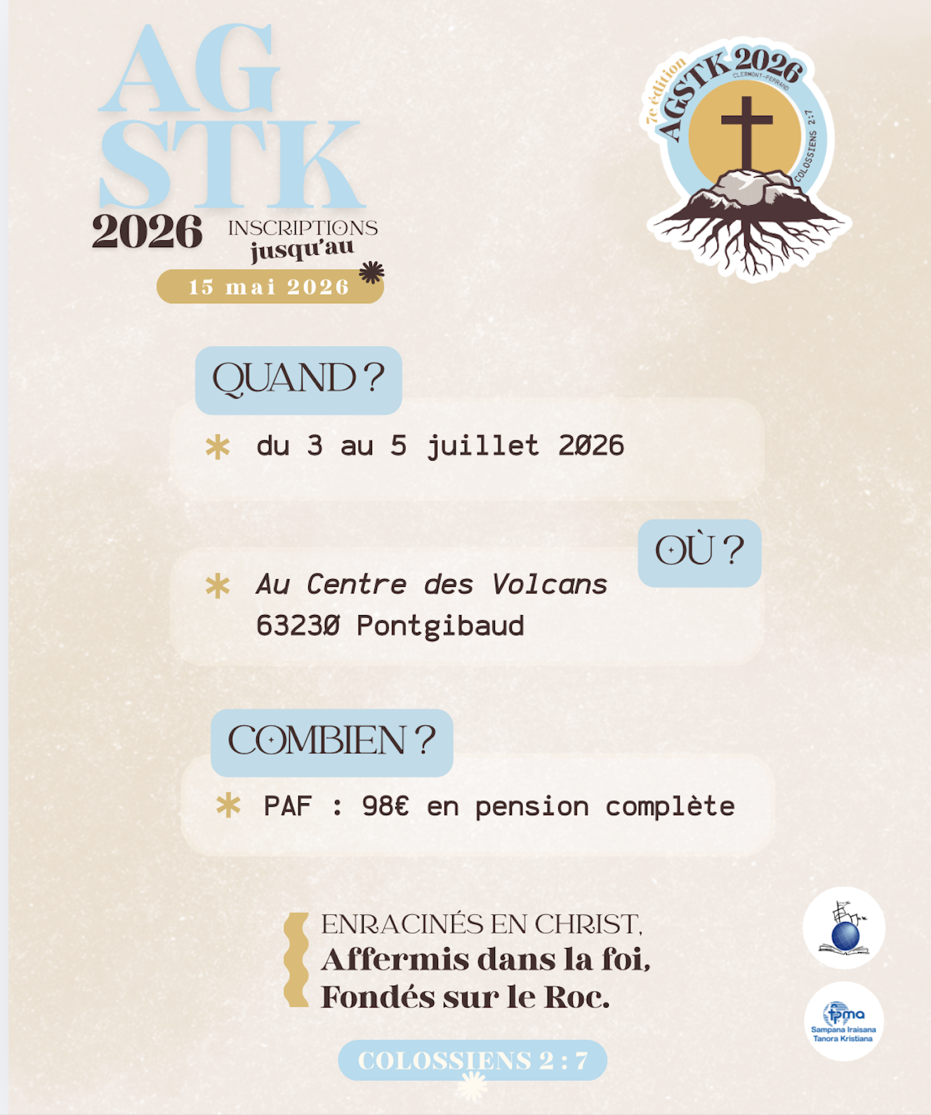 Nous invitons chaque responsable à relayer cette information au sein de sa STK locale, régionale ou nationale, afin que chacun puisse s’organiser dès à présent pour participer à ce temps fort de communion, d’enseignement, de partage et d’édification fraternelle.